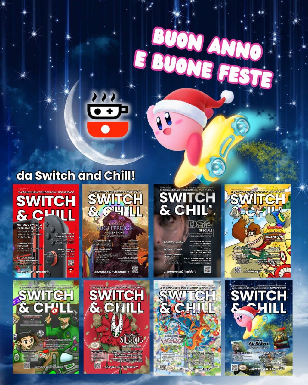Questo è perciò un grazie sentito non solo a tutte le persone che hanno collaborato con noi durante quest’anno (e che speriamo di poter riportare sulle pagine di Switch and Chill nel 2026), ma anche grazie a voi lettori, o aspiranti tali, che ci dimostrate il vostro supporto con tanto affetto.