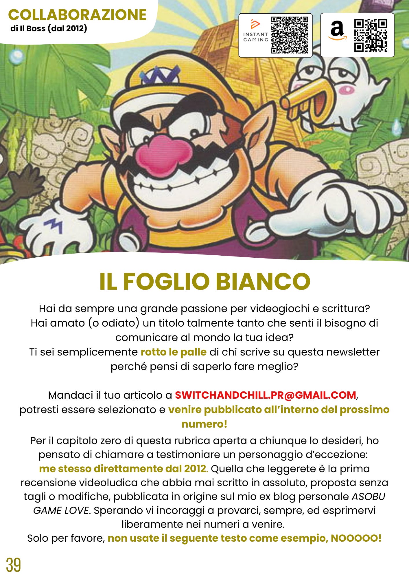 Per provare a fare il nostro lavoro non solo “per la gloria”, trovando quindi un modo alternativo e tutto nostro di sostenerci economicamente, con un’idea originale, utile ma anche divertente e bella da guardare, conservare, leggere e condividere. Oltre a supportarci con l’abbonamento che fa da “prezzo” di ogni numero mensile, si può aiutare anche con donazioni spontanee su PayPal, o acquistando i tuoi videogiochi preferiti dai link appositi distribuiti tra le pagine della rivista. Che rimandano ai nostri shop affiliati su Amazon e Instant Gaming e non ti costano un soldo di più, ma ci danno una percentuale di ogni acquisto diretto dai link.